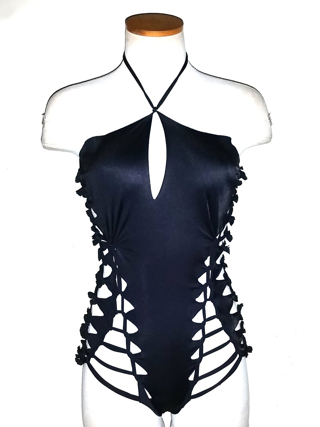 Twisted Kaho'olawe Swimsuit will keep you looking fierce in custom monokini. Featuring cut out designs on the front and sides. These bikinis are not lined. Made with high quality nylon/lycra spandex swimwear fabric and 100% "Twisted In Hawaii" (aka Made In Hawaii). You can swim in these without the garment getting distorted in the water. No returns or exchanges for swimwear.